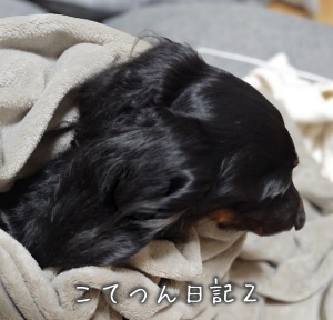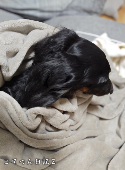 様子を見に戻ると、爆睡するこてつん。